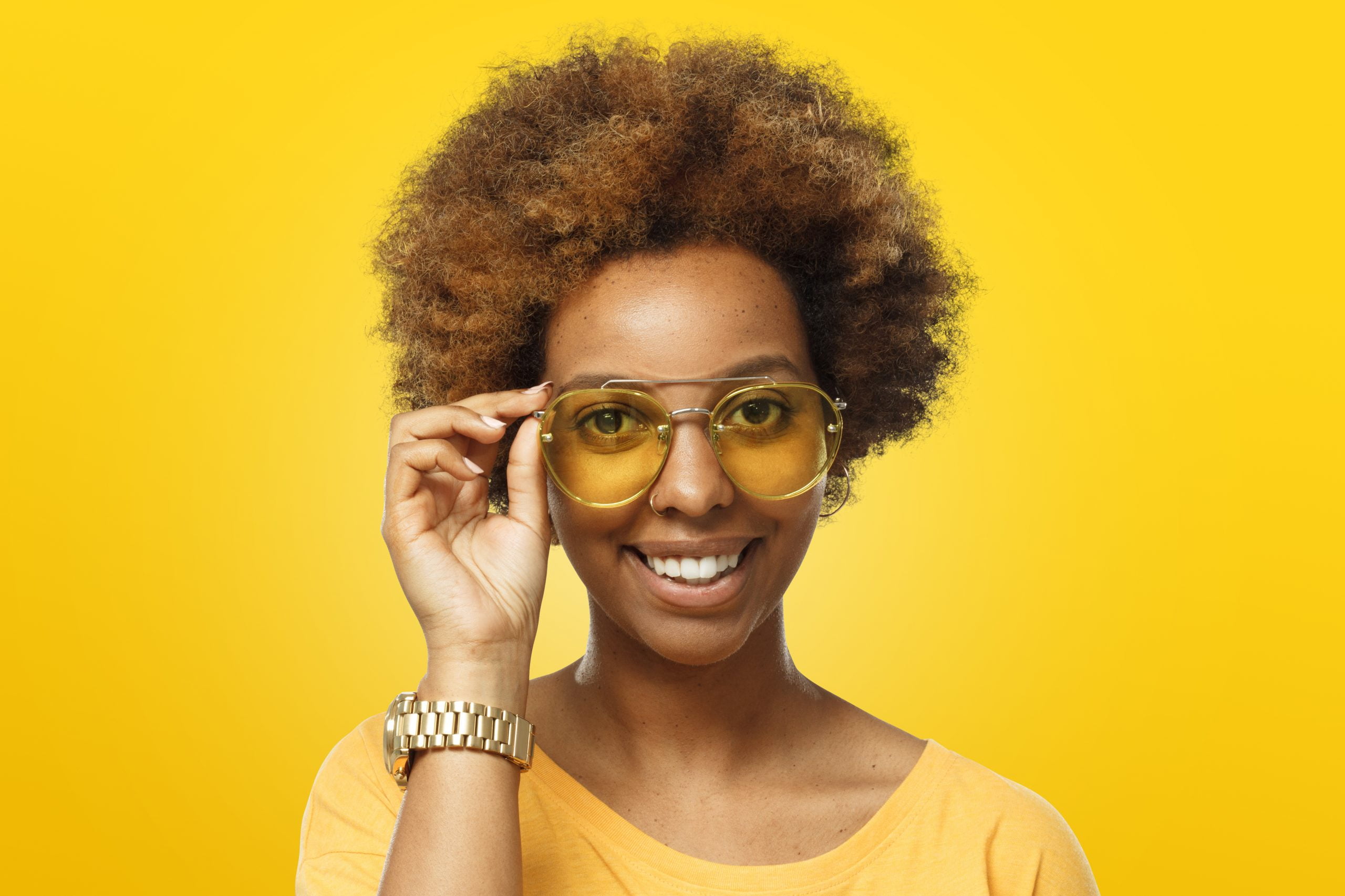 In 2021, seventies’ nostalgia influenced eyewear designs. This year, we go further back in time to the optimistic and rebellious sixties era, with bright retro colours, oval and cat-eye shaped frames, horn rims and orange lenses adding retro flair to everyday looks.