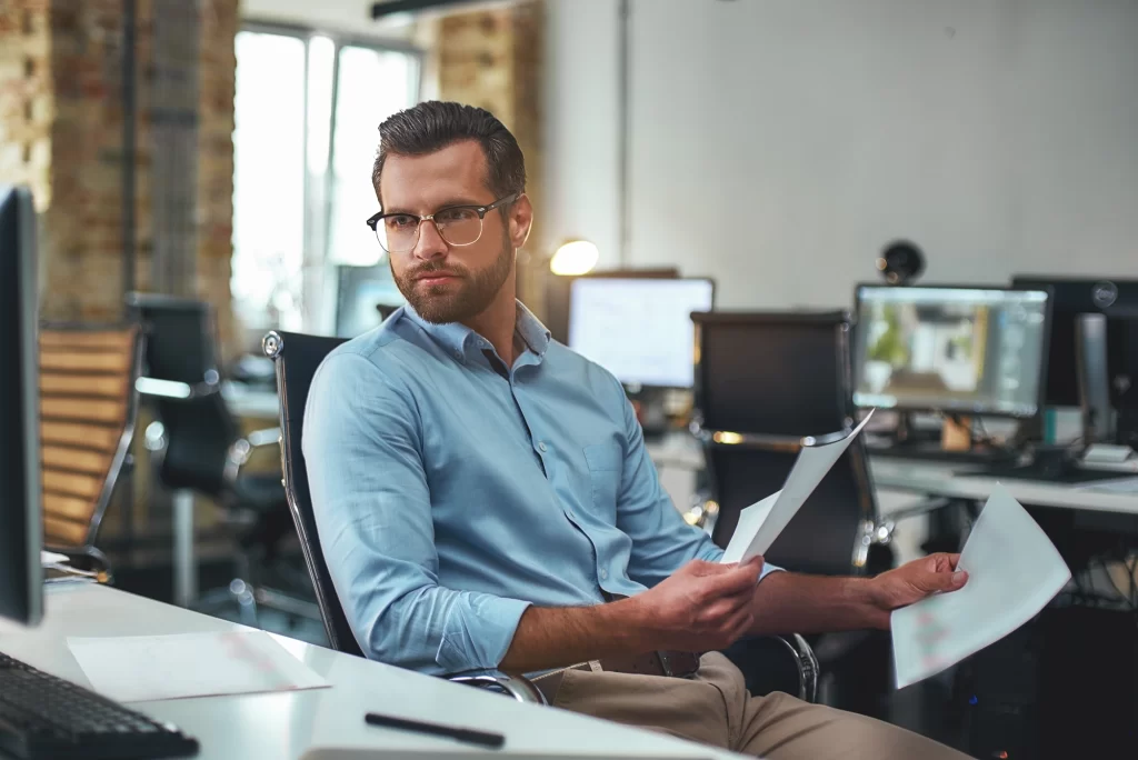 Progressive lenses are general purpose glasses that most people over the age of 40 wear to help see things at near, intermediate, and far distances. However, these lenses are made to deliver the widest field of clear vision and your visual field can become distorted when looking at objects at close or intermediate distances. If you spend most of your day working on a computer, progressive lenses will not provide the support you need. Your vision will be impaired, and your eyes will feel constantly fatigued, leaving you feeling tired by the end of the day. A spare pair of speciality office or computer glasses with blue light lenses for when you’re at your computer would be a better choice. These are designed for long hours of screen time, protect your eyes from harmful blue light that is emitted from digital screens, and provide a more comfortable and much clearer field of view in the intermediate zone.