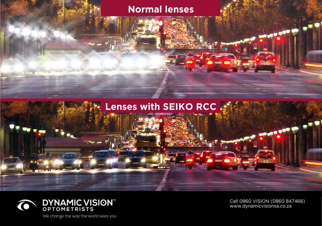 Seiko’s RoadClearCoat (RCC), designed specifically for night driving, reduces the glare from oncoming traffic, as well as wet weather reflections. Seiko RCC also combats the higher luminance of modern Xenon and LED lights. You can even wear them during the day to reduce reflections.